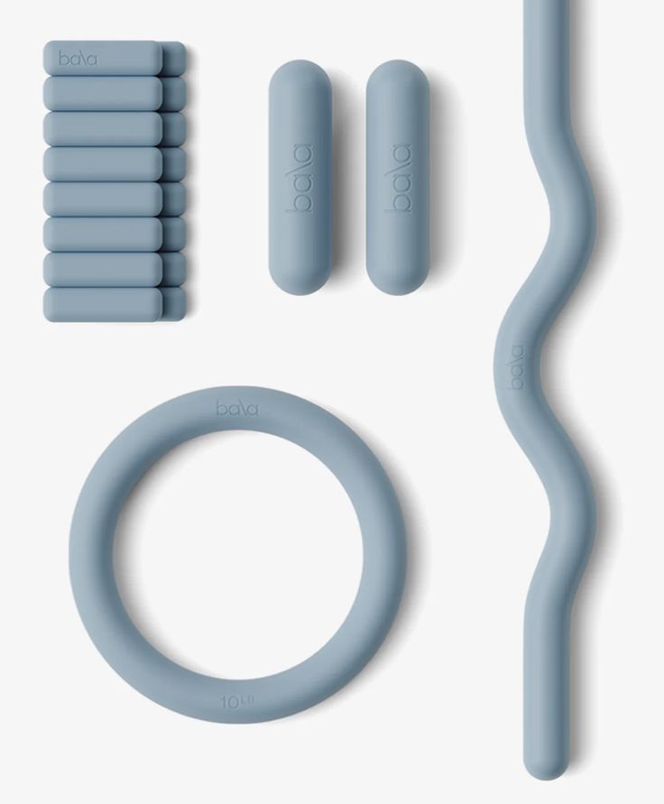 多機能なヨガアクセサリーがセットになったトレーニング用具一式。